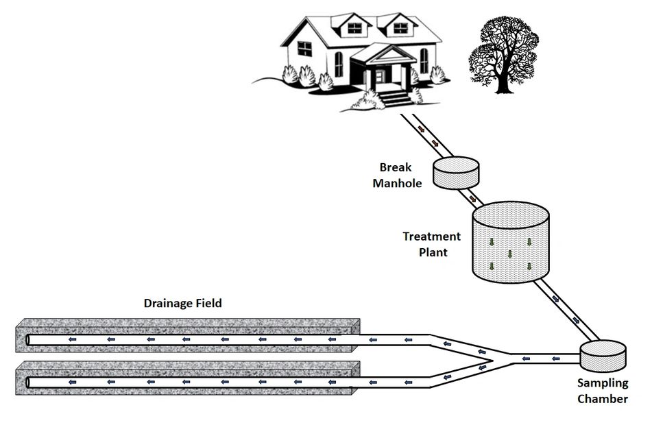 A drainage field allows the infiltration of treated effluent into the ground at a controlled rate. Soil percolation tests are required to be carried out on the land where the drainage field is intended to be built. It is a test to determine the rate at which the soil absorbs a calculated volume of water and to make sure the soil is suitable.